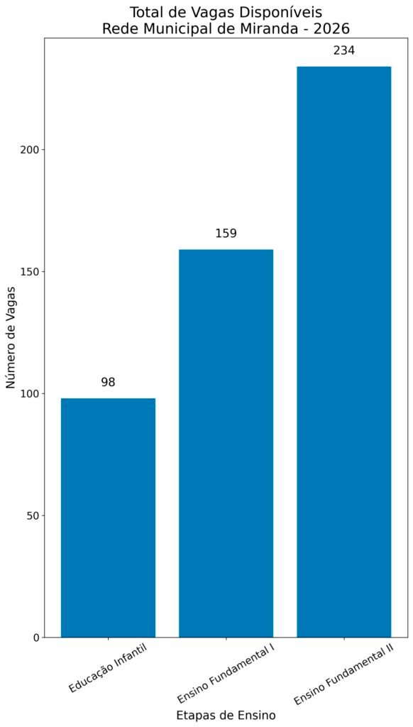 Em Miranda, a estruturação antecipada do calendário, a distribuição de kits escolares e a ampla oferta de vagas reforçam o compromisso da administração municipal com a educação pública.
